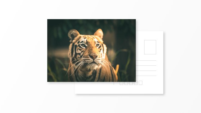 Pohlednice s jednou fotografií na výšku a vlastním textem na zadní straně.